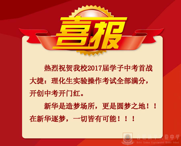 合肥新華實(shí)驗(yàn)中學(xué)理化生實(shí)驗(yàn)操作考試首戰(zhàn)大捷全部滿(mǎn)分