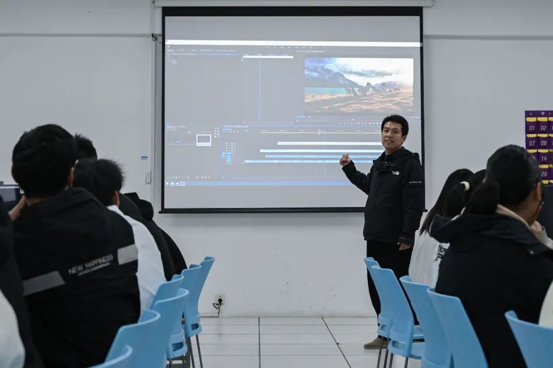 談到這門課程的特性,周序老師說(shuō):“這門課我打磨了很久,最終決定采用項(xiàng)目驅(qū)動(dòng)的教學(xué)模式,學(xué)生需完成從劇本到成片的全過(guò)程,以實(shí)際成果檢驗(yàn)學(xué)習(xí)效果;在課堂教學(xué)上,引入多媒體交互教學(xué),利用視頻、音頻和在線平臺(tái),增強(qiáng)課程互動(dòng)性和趣味性,課程面向所有專業(yè)的學(xué)生,鼓勵(lì)大家跨學(xué)科合作,比如可以結(jié)合編程、動(dòng)畫制作等技能,提升微電影的創(chuàng)意與表現(xiàn)力。這些改革旨在培養(yǎng)學(xué)生的綜合應(yīng)用能力,激發(fā)創(chuàng)新思維,并適應(yīng)數(shù)字媒體時(shí)代的發(fā)展需求。”