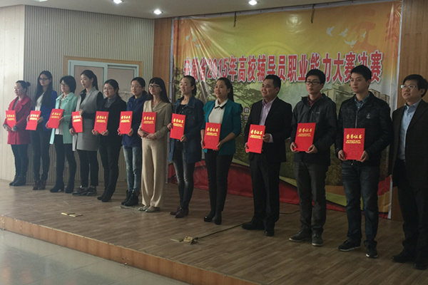 安徽新華學院參賽輔導員憑借自身過硬的素質和從事輔導員工作的豐富經驗,順利完成了各個環節的比賽。經過激烈角逐,王強亞和潘馳群兩位老師憑借出色表現,以優異成績脫穎而出,分別獲得2015年安徽省高校輔導員職業能力比賽復賽(合肥賽區)一等獎和三等獎,取得了歷史最好成績。