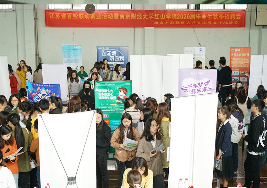 10月30日上午,江蘇省百校聯(lián)動就業(yè)活動暨南京財經(jīng)大學(xué)紅山學(xué)院2020屆畢業(yè)生秋季招聘會在南京財經(jīng)大學(xué)紅山學(xué)院福建路校區(qū)體育館舉行。途牛信息科技、招商銀行南京分行、南京蘇寧云財信息技術(shù)有限公司、浙商證券、南京萬得資訊等近百家用人單位現(xiàn)場招聘,涉及金融、財會、銷售、管理等多個崗位,基本涵蓋紅山學(xué)院全部專業(yè)。