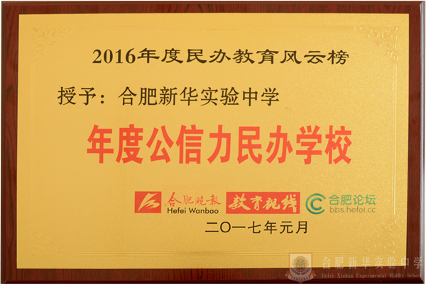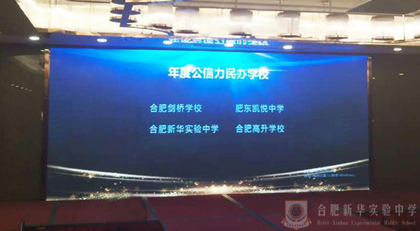 授予合肥新華實(shí)驗(yàn)中學(xué)“年度公信力民辦學(xué)校”